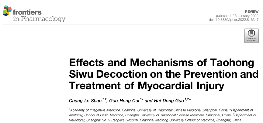 Frontiers in Pharmacology:桃红四物汤防治心肌损伤的作用与机制
