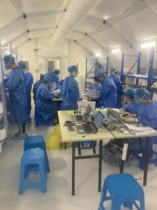 2021级中西医结合临床专业博士生邵诗芸跟随91制片厂 一支20人的PCR检测志愿者队伍应援进驻位于浦东新区的上海之江医学检验所。
