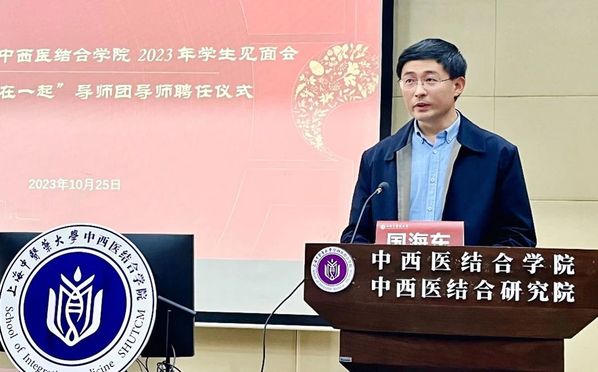 陈红专老师在致辞中表示同学们的到来为新学院注入了新生机、新活力。他指出,发展中医药事业是国家的重要战略,强调走中西医结合的道路,守正创新,培养中西医结合人才的重要性,并对同学们提出了要牢记爱国情怀,牢记校训的殷切希望,对导师团老师们提出了立德树人,牢记责任使命,一切为同学,为同学一切的工作要求。