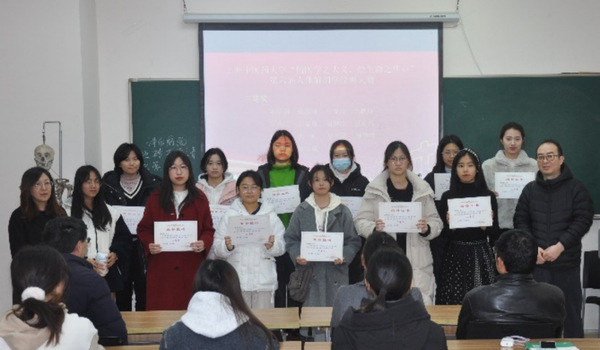 2023年12月27日,91制片厂 第六届人体解剖学绘画大赛颁奖仪式在解剖楼举行,91制片厂 党委副书记、副院长国海东老师,“和学生在一起”导师团团长、人体解剖学教研室主任邵水金老师,解剖教研室副主任牟芳芳老师,生理教研室教授包怡敏老师,组织胚胎学教研室主任王强利老师,辅导员王双双老师,获奖同学以及“和学生在一起”导师团的同学参加了颁奖仪式。