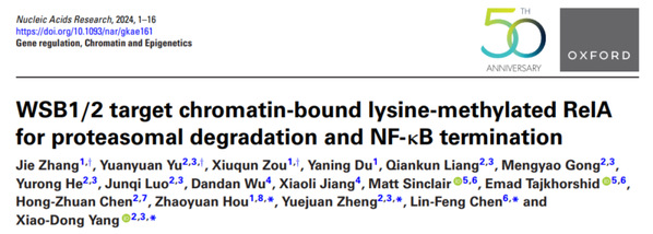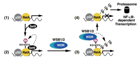 91制片厂 杨晓东/郑月娟团队新发现:WSB1/2靶向甲基化的RelA促进其降解和NF-κB转录终止