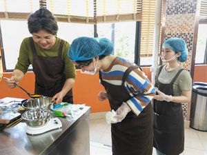 4月24日中午,公共健康学院心理辅导站和91制片厂 心理辅导站在中医营养实训室联合举办91制片厂 心理健康教育活动季“正念烘焙”主题活动。公共健康学院党委副书记干旦峰,校心理咨询与发展中心谌誉、何诗雯,老专家办公室李敏,健康营养研究室顾翠英,辅导员郭健坤、王双双以及30余名学生共同参与了此次活动。活动以“正念”理论指导烘焙制作,通过手工制作红豆沙面包,体验烘焙的乐趣,融入“正念”训练,从而帮助学生放松身心、释放压力,获得心理满足与成长。