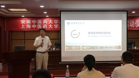 4日下午,启动仪式在休宁县中医医院会议厅举行。休宁县副县长冯腾海出席活动并致辞,他对两校师生的到来表示热烈欢迎,并期望同学们能深入基层,在实践中感悟新安医学的独特魅力,为中医药传承发展贡献力量。安徽中医药大学申国明教授为在场的师生们作了题为《新安医学的主要成就和传承发展》专题讲座,深入浅出地讲解了新安医学的理论体系及其在现代医学中的应用,为后续实践活动奠定了理论基础。